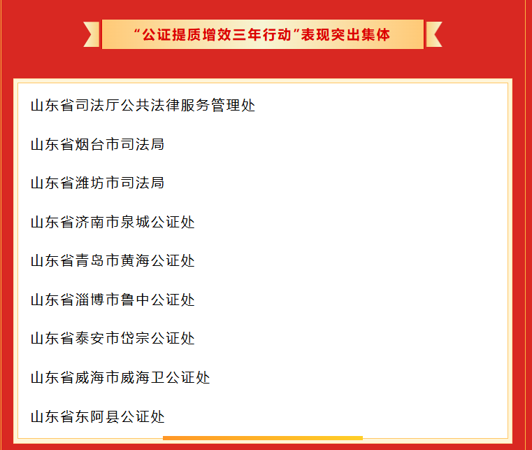 近日,司法部印发《关于表扬“公证提质增效三年行动”表现突出集体和个人的通报》(司发通〔2025〕72号),对在推动公证事业高质量发展中作出积极贡献的集体和个人予以通报表彰。青岛市黄海公证处凭借在“公证提质增效三年行动”中的卓越工作成效和突出贡献,荣登200个表现突出集体表扬名单之列!
