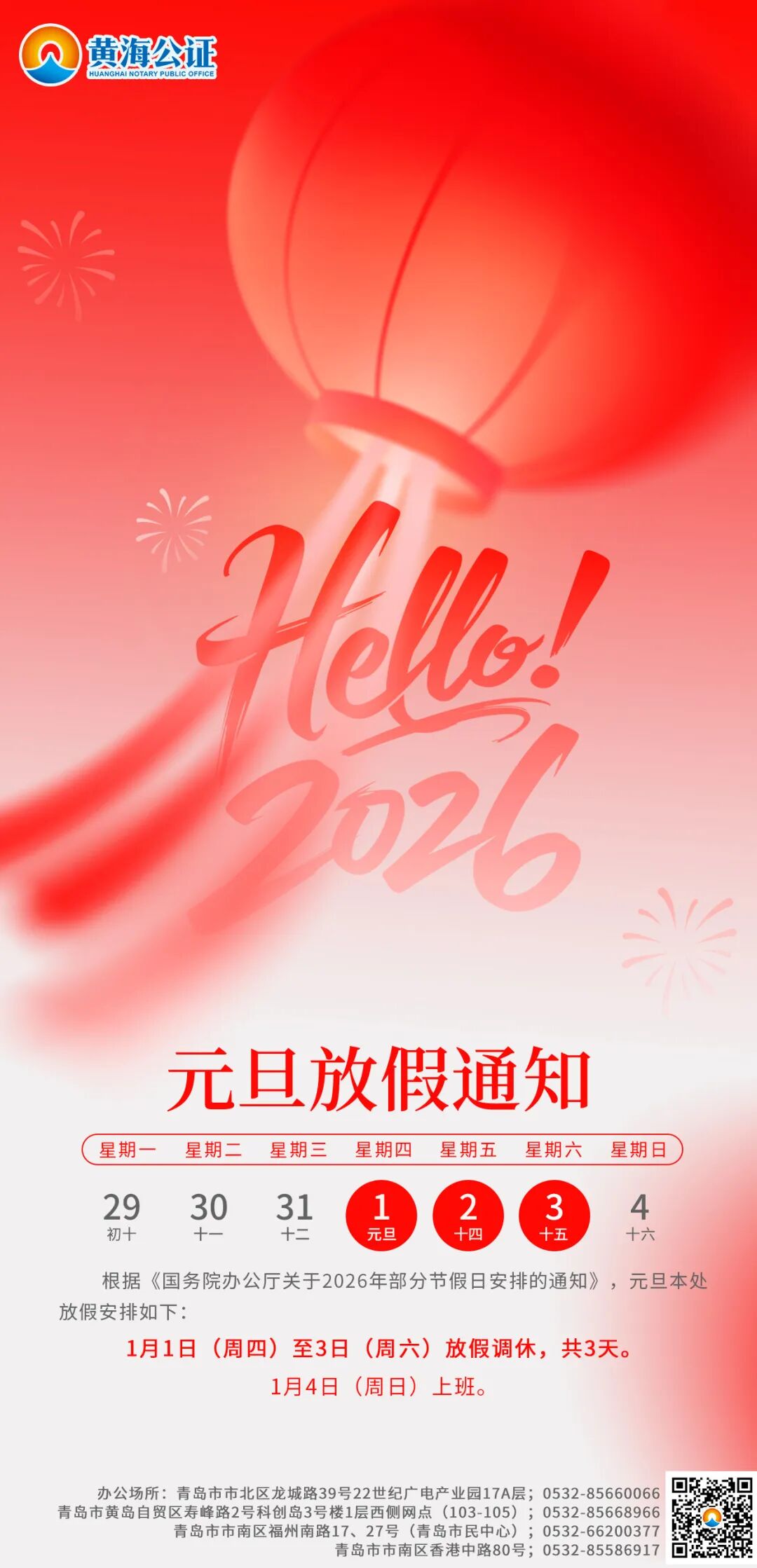 关于2026年元旦放假的通知